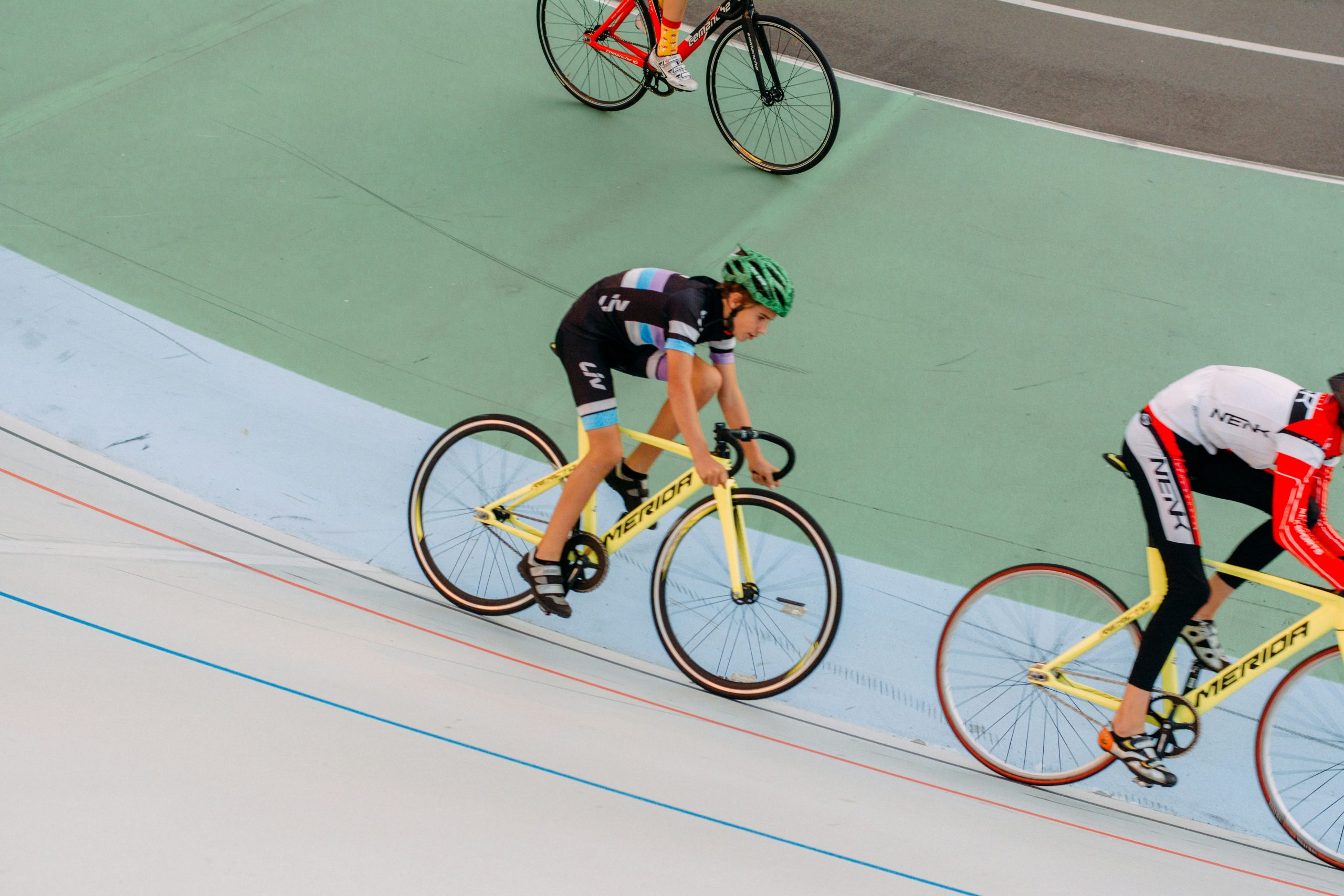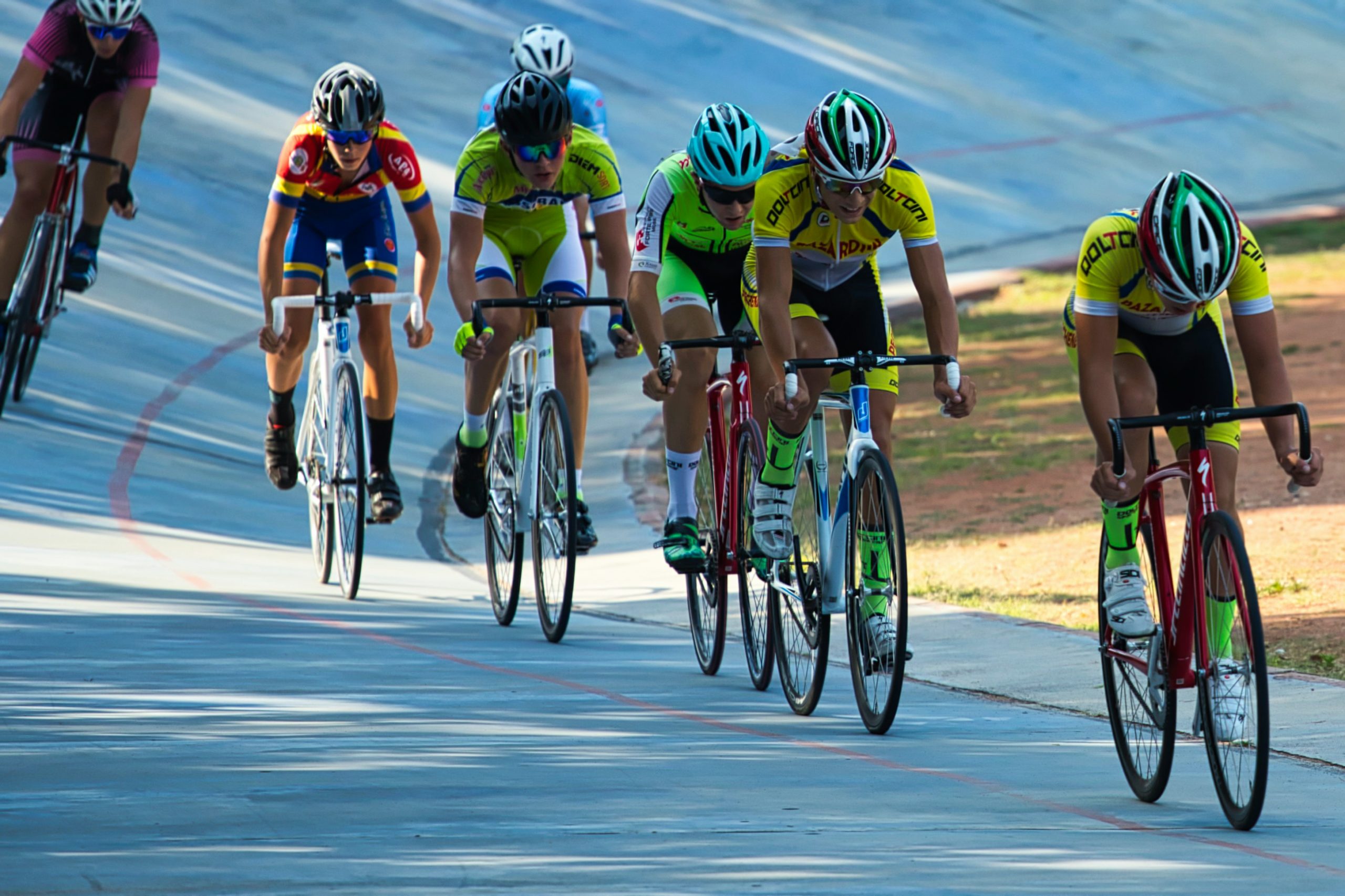 Madison: Varios equipos compiten en una carrera de relevos, recorriendo 50 km los hombres y 30 km las mujeres. Un corredor de cada equipo compite mientras el resto descansa pedaleando lentamente. Hacen el relevo con un apretón de manos aprovechando para dar impulso al corredor que comienza su turno. Cada 10 vueltas se hace un sprint para asignar puntos igual que en la carrera por puntos.
