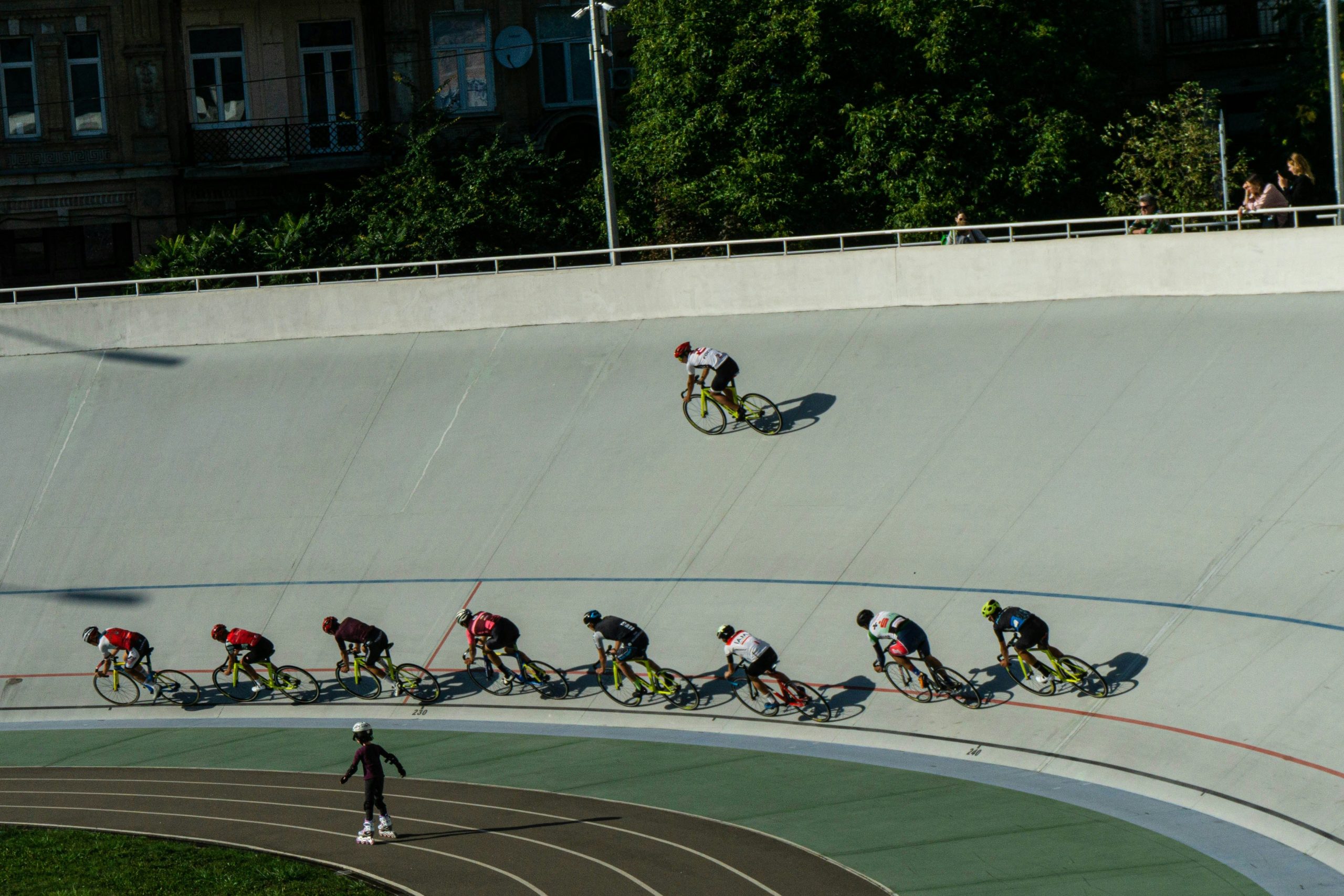 Velocidad individual: Dos ciclistas dan tres vueltas al velódromo, pero solo se cronometran los últimos 200 metros. El primero en cruzar la meta gana.